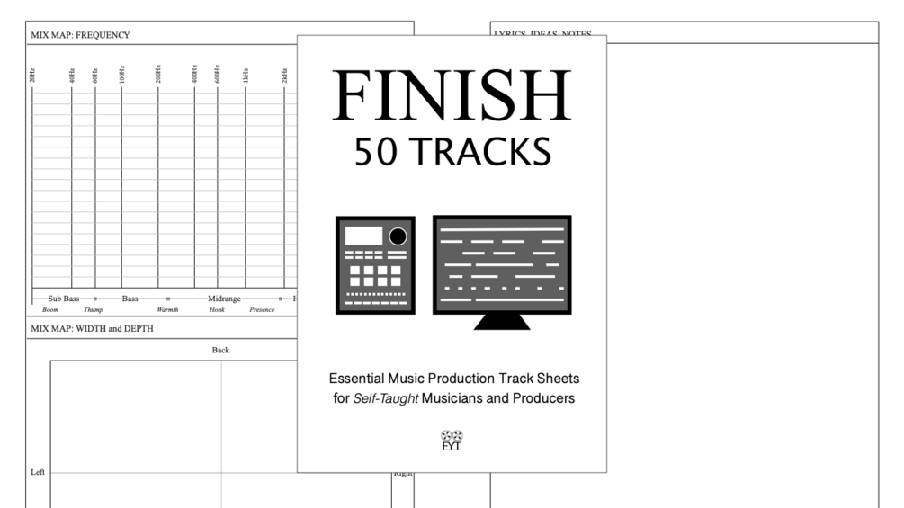 This is the printable version of 'Finish 50 Tracks'. A book designed for music producers to plan and breakdown their music, improve mixes and learn about arrangement and structure as they build and finish their tracks.